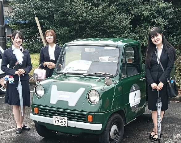 T360見に来る方はツインカムエンジン、タコ足マフラーなど知ってる方多い。会場手前の大型道の駅「ふじはし」で休息してたら金沢クラシックカー(会場・日本自動車博物館)代表の東京オリンピックのセドリックスペシャルと同じに、一緒に会場まで。後部座席の後ろから吹き出すエアコンは皆さん喜んでた、昔の高級車はこんな感じ。