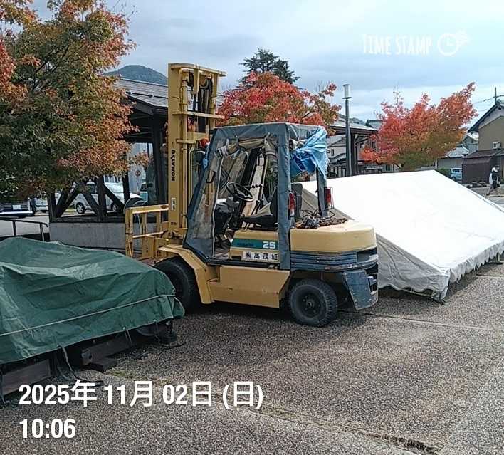 明日の福井県勝山市ゆめおーれ勝山発動機運転会準備完了、大した準備では無いが。ゆめおーれ勝山運転会は例年晴れ、だったが明日の天気予報は90%の雨。紅葉まだ早いけど会場のモミジ赤い、