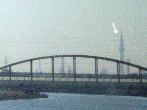 都内での仕事が早く終わったので、新松戸乗り換え常磐緩行線~武蔵野線経由で帰宅しました。武蔵野線でも西船橋~東川口間の開けた箇所で東京スカイツリーを眺めることができます。そのなかから2点ほど、電車内から撮りましたのでご紹介します(いずれもズームをかけて撮影し、カメラ側で300%~500%に拡大のうえトリミングしています)。こちらは、吉川駅西方・中川鉄橋で撮影しました。右側の矢印でしるした注射器を立てたようなシルエットが、スカイツリーです。送電線の鉄塔よりも高いため、非常に目立ちます。続く写真は、越谷レイクタウン駅東方から。送電線の鉄塔と見誤りそうですが、形状ですぐわかりました。またどこかで撮れたら、紹介します。【お取り寄せ】DHK 3Dペーパーモデル 東京スカイツリーを組み立てよう (通常サイズ・58cm)【楽...税込み709円 Bトレインショーティー205系 武蔵野線 2両セット税込み945円↑お求めは楽天市場へ