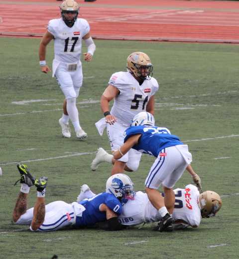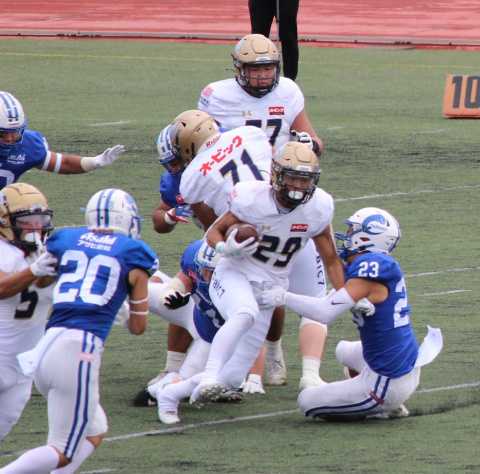 そんななかでも、WRの渡邉ジャマール選手(背番号18),DBの助川左門選手(背番号19),RBの李卓選手(背番号29)の活躍が光りました。いずれも、チームのこれからを担います。
