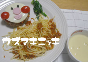 昨日は予定通りのお子様ランチメニューでお祝いもちろん中学生のこまきにもアンパンマンハンバーグ(ただし大きさ3倍)スパゲティのソースは、玉ねぎ・セロリ・椎茸・人参・トマト缶・他調味料。パスタには、オリーブ油・ニンニク・塩・黒こしょうでかるく味付け。(写真はチビまきの分なので、ソースと混ぜているだけ)それから、クリスマスに作ったロールケーキ 優しい。。。シンプルロールケーキ by konominこれ、また作りました。好評です。それに、果物飾って、ろうそく2本たてて。ふぅーって言ってるけど、なかなか消えず。こまきが反対側からこっそり吹いて消したのでした1年前は、まだ歩けなかったチビまきこの一年の成長運動面走って逃げる。公園で転んでもへこたれず、1人で起き上がる。ジャンプ(少しだけうく)細い台の上も、スタスタ歩く言葉なにしてるの~?どうしようか~?など会話(風)なお話もできるように。数字10まで数える。6まで読める。あいうえお絵本まる覚え、「あ」というと「あし」と答える。「絵本のぺーじをめくって」と言ったら腕をまくった(笑)聞き間違えもあり。歌、大好き。すぐ覚えてまねして歌う。生活6時半頃起床トイレ(補助便座)でおしっこ朝ごはんおもちゃで遊ぶパパ・兄を見送り。TV。本。8時45分 登園園で午前中 外遊び(雪遊び大好き)先生の名前全部覚えた。クラスの子もお互い名前呼び合ってカワイイ。11時 お昼12時~14時半 お昼ね15時 おやつ17時 おむかえ1人で遊んでくれる時は助かるけど「本読んで~」「しまじろう、やって~」と催促多し。18時半 夕食20時 お風呂20時45分頃 パパと就寝お気に入りのおもちゃアンパンマンの付いているものとレゴブロック保育園では、黄色い車がチビまきのお気に入り、専用カーとして使っていた日々だったが、最近入園したH君がライバルに。日々その車をめぐり紛争、そして負傷。まだ言葉がでないH君は、噛んだり引掻いたりするのだ身長・体重身長85センチ 体重12.0kg最近計ってない~と書いたけど、保育園でしっかり計測してました。洋服のサイズは90~100日々新しい発見がある今日この頃です。最近ちょっと甘えん坊気味。ご飯食べている時も、抱っこ~(涙)となることも。夜泣きもまだたびたびある。夕食作っている時に「おんぶしたい」という時も。あったかくて、おんぶするのは好きなんだけど・・・重いぃいったいいつまでおんぶできるかしら・・・肩こりこり。