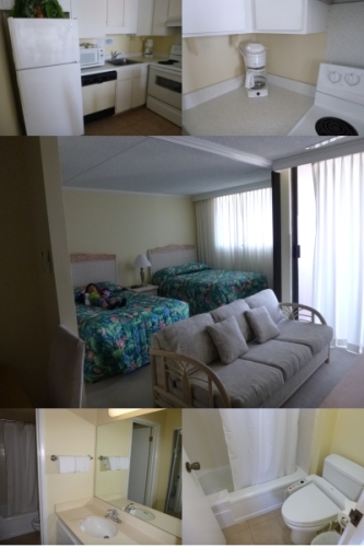 パシフィックモナーク 27Fのお部屋シングルとダブルを並べて置いてあるベッド反対側にソファキッチンソファからの眺めラナイに出るとこんな感じ正面にはダイヤモンドヘッド・・・うーん残念夜景は素晴らしかった第1希望は、他の管理会社の部屋だったんだけど空いてなくてここは古さは感じたものの私的には問題なし、すべて許容範囲ネットも電話も無料で使えたし、フロントの方も親切だった。やっぱりキッチン付は快適