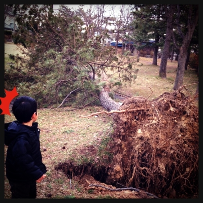 昨日夜遅く電気がついて、本当によかったです。夜を徹して作業している方々に心から感謝明るい部屋で食事、たまった洗濯モノと食器を洗い、掃除機をかけ、ストーブがついている部屋でパソコン電気ってほんと素晴らしい。そして、今朝の風景は・・・雪。写真は風で倒れたうちのウッドフェンス。こんなにすごい風だと思わなくて補強しなかったことに反省。近所でも小屋の屋根が飛んでたり、保育園の屋上からプールが落ちてきたりもっと防災意識をもたなくちゃいけないなぁと実感したよ