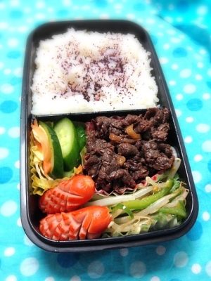 新学期始まって、またお弁当作りの毎日。夜寝る前に、メニュー考えておくと時間が短縮されることに気がついた弁当作り2年目。今日のお弁当牛肉しぐれ煮・もやしとピーマンのペッパー炒・野菜浅漬・ウインナ