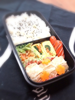 高校男子 今日のお弁当シュウマイ・ほうれん草と人参入玉子焼・切り干し大根の味噌煮・ウインナ今日はとてもいい天気。春らしい一日。今年は花粉が少ないせいか、まだ花粉症発症していない。もしかして、治った?!と、期待