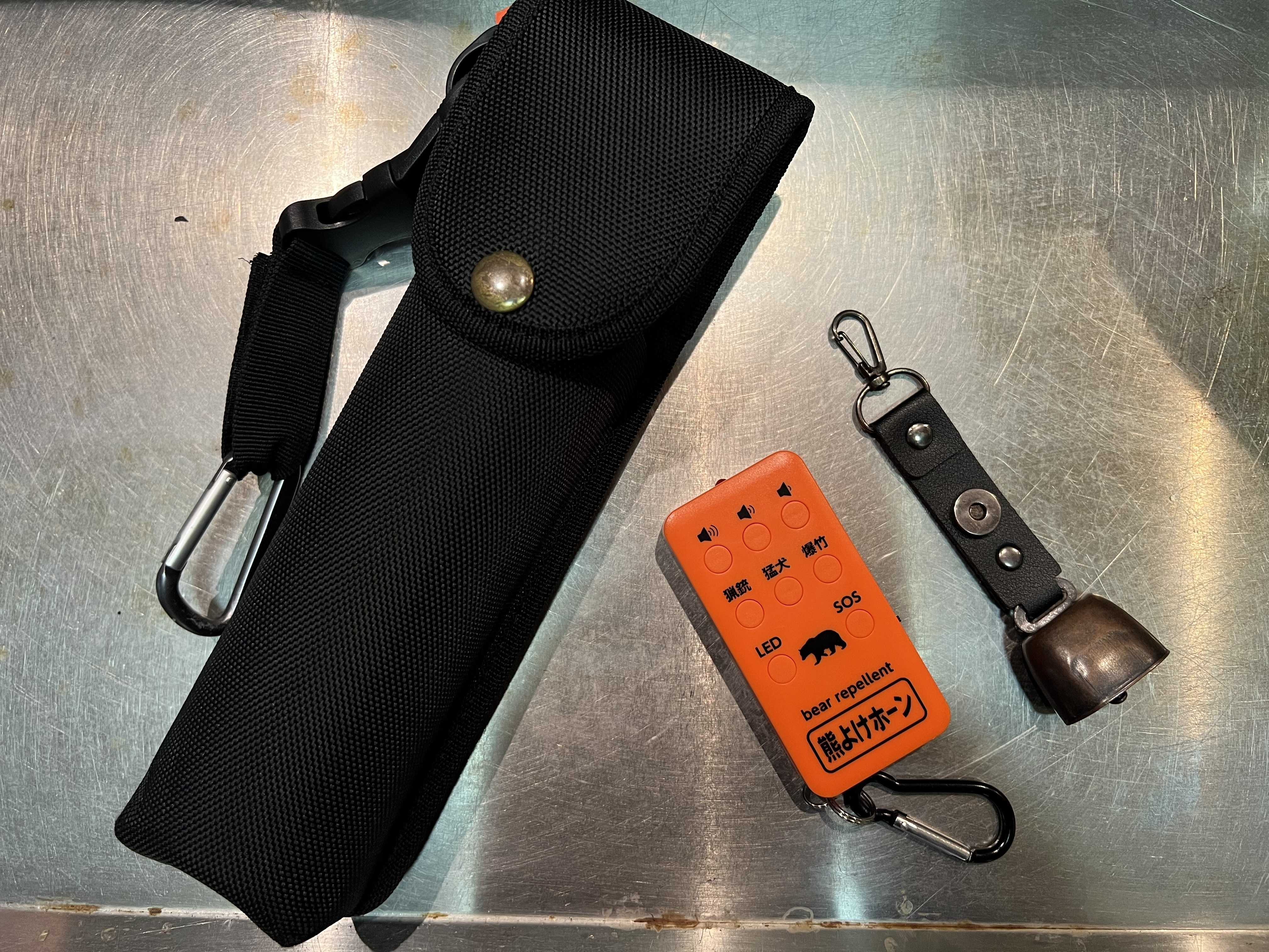 熊鈴・熊除けホーンはもちろん、熊スプレーも持って