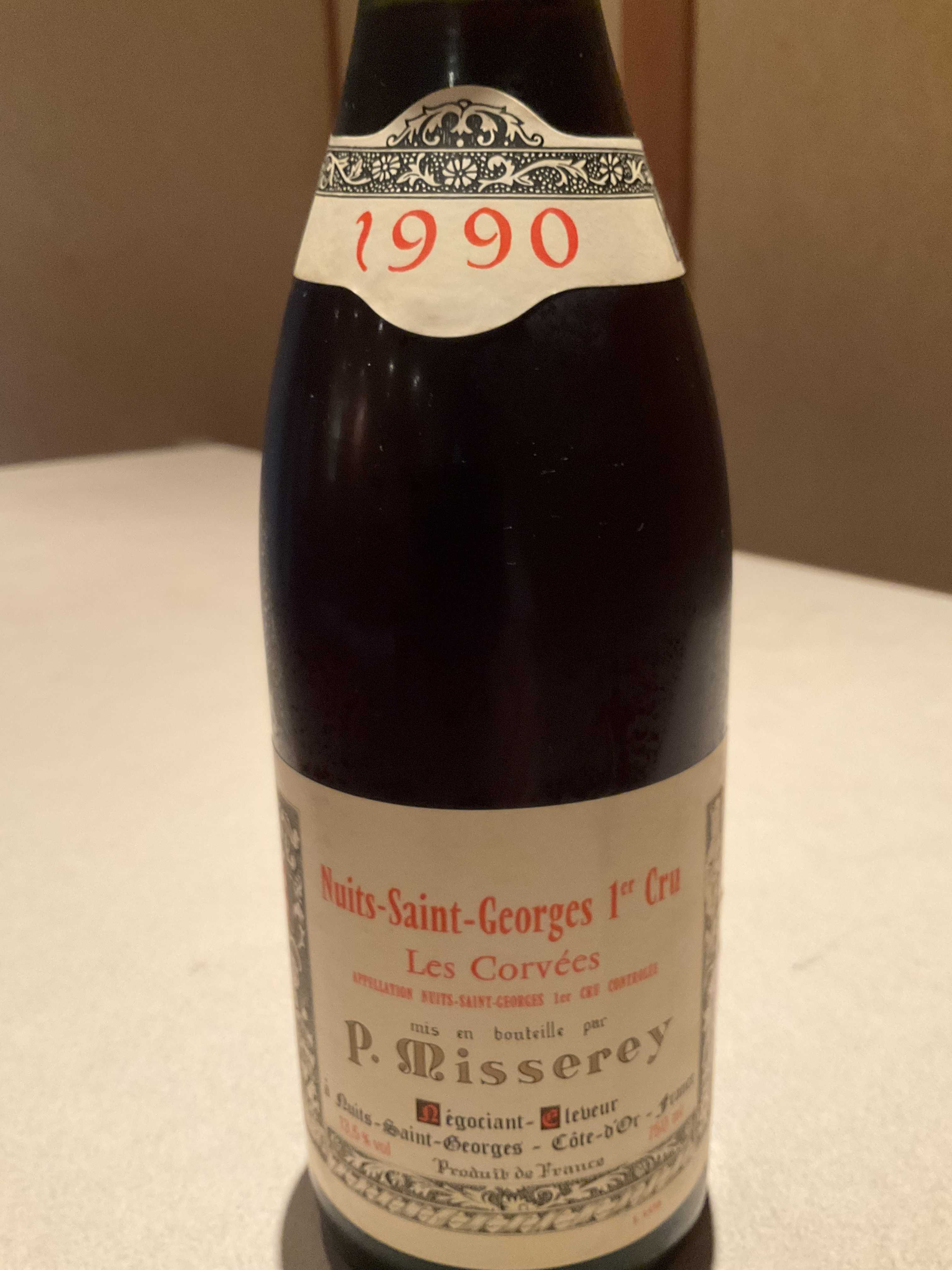 赤ワインからでNuits Saint Georges 1er Cru Corvees1990(P Misserey)これも在庫は1本限りとなっています。今日の夜は少し席に空きがあります。