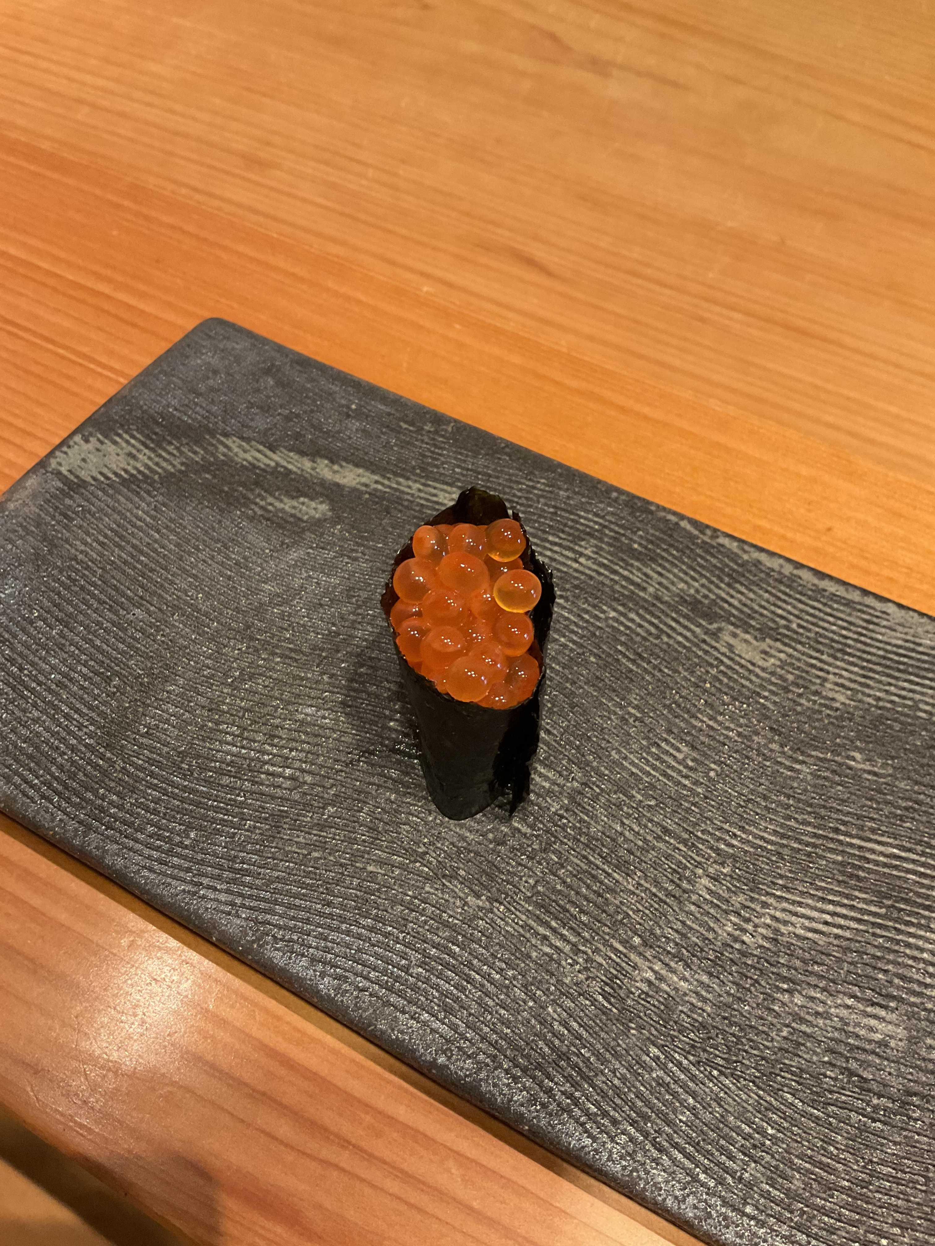 新物イクラ仕込みました。まだ粒が小さいですが、柔らかく美味しいですね。今日の夜は、満席でしたが1組キャンセル出まして少し席に空きができました。