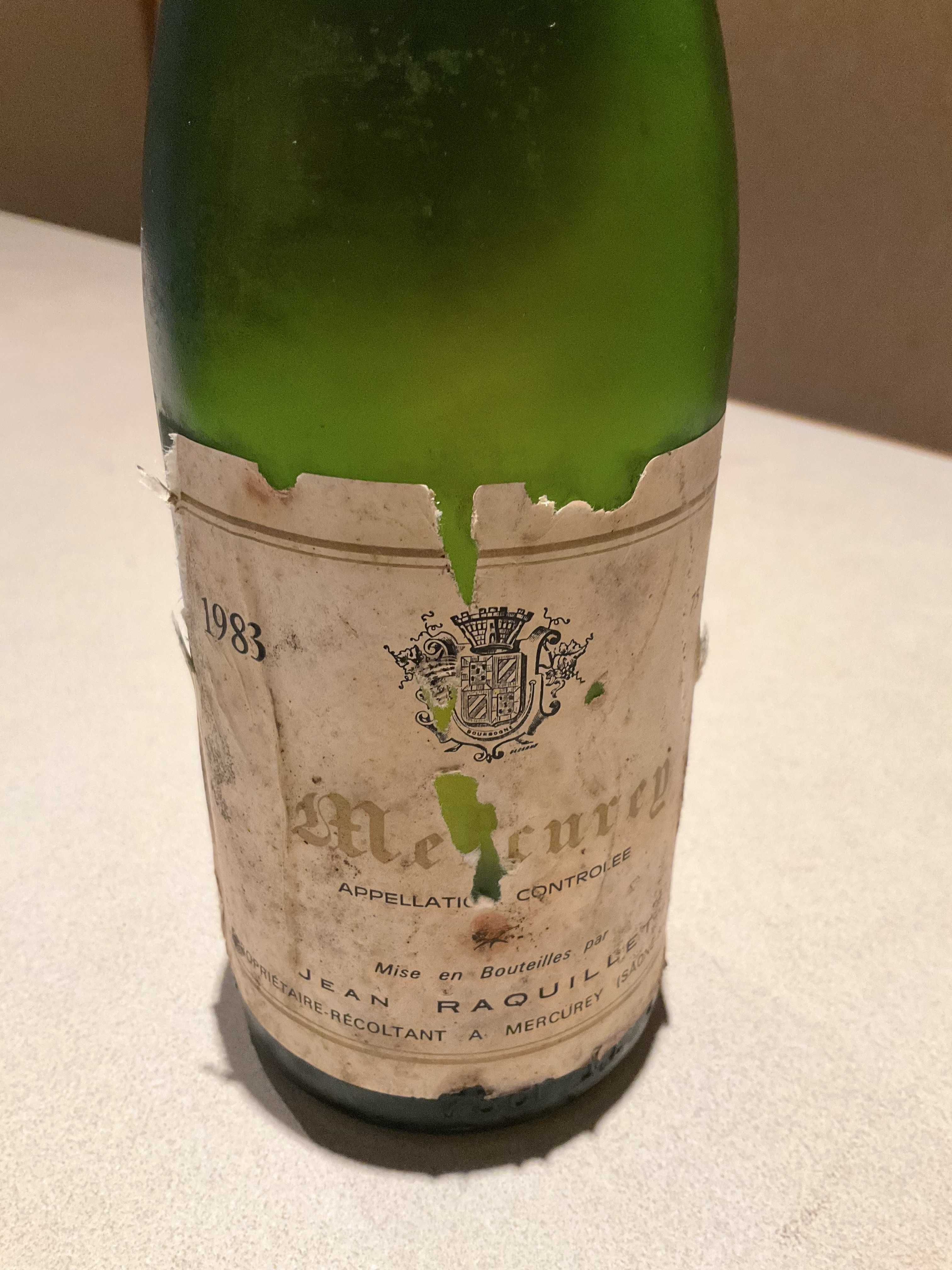 白ワインからでMercurey1983(Jean Raquillet)珍しい40年以上前のメリュキュレイの白ワインです。色調も綺麗で期待が持てますが、在庫は1本限りとなっています。今日の夜は、少し席に空きがあります。