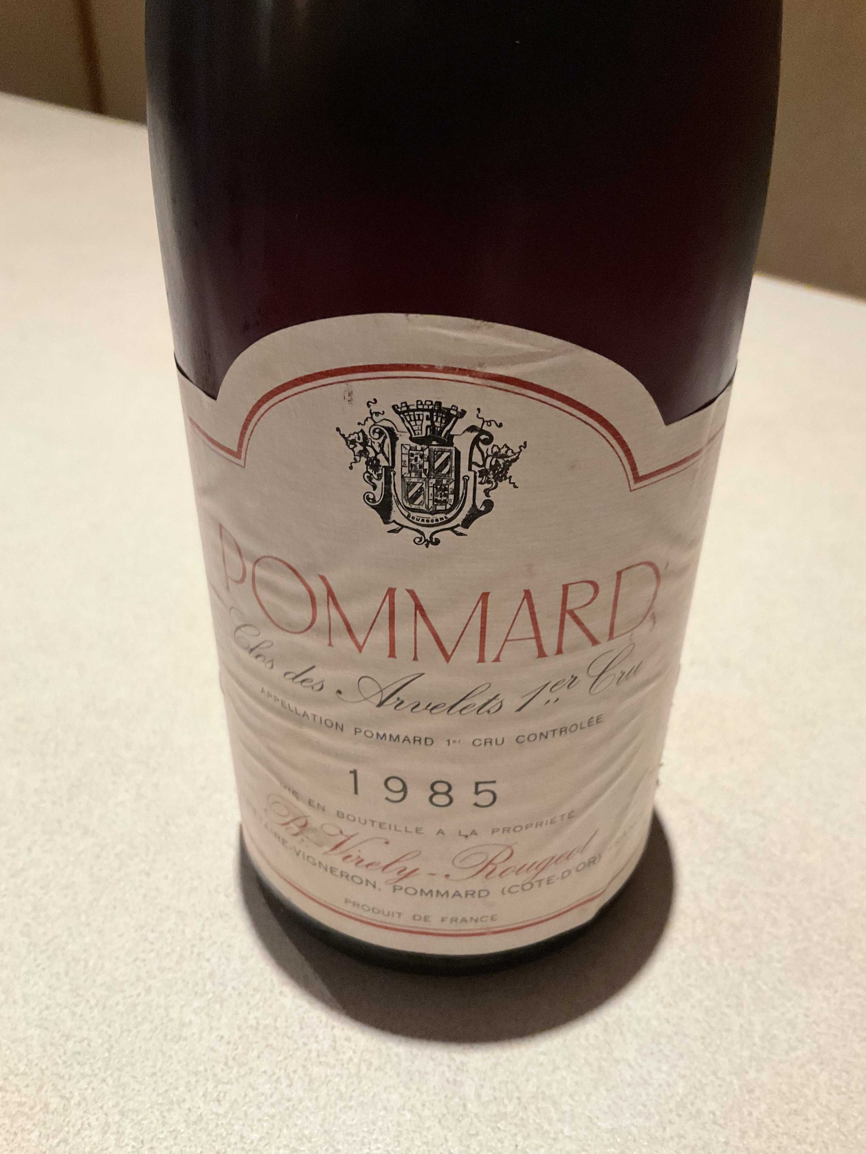 赤ワインからでPommard 1er Cru Clos des Arvelets1985(Virey Rouget)ヴィンテージ的には、赤ワインでは1990、1985ぐらいが丁度今飲み頃のワインが多い感じですね。90はまだ若い感じのワインもありますが今日の夜は席に余裕がありますので
