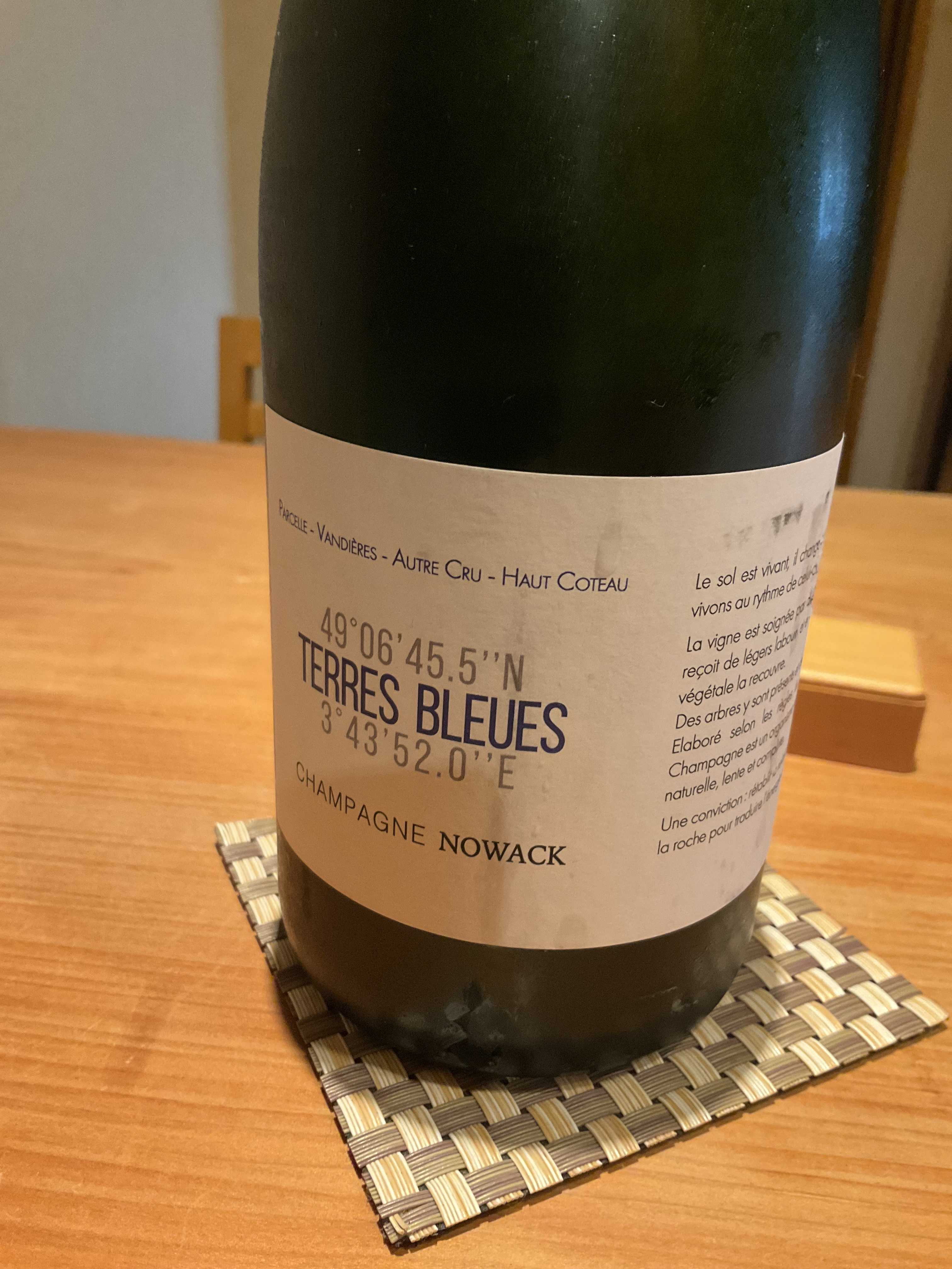 シャンパーニュからでNowack Terres Bleues Blanc de Noir Non Dose(PM100%)またまたノワックです。このキュベは、もう少し柔らかくふくよかな味わいですね。