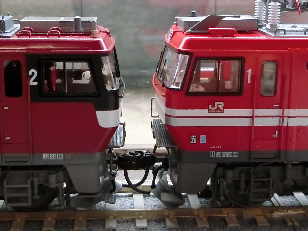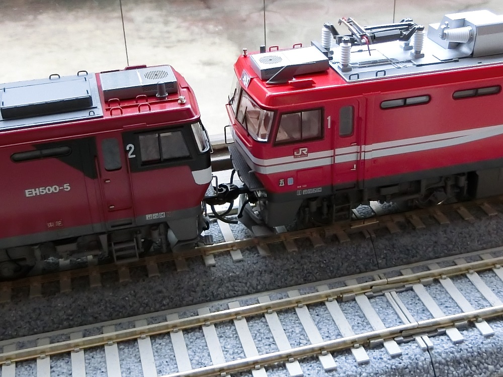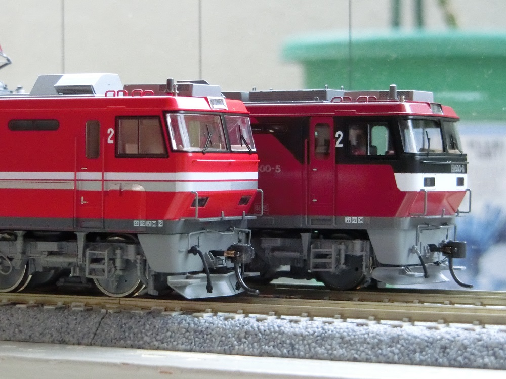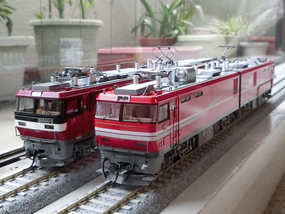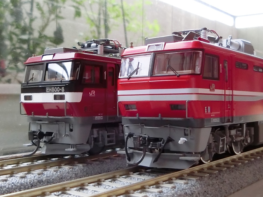 先月入線したトミックスのEH800プレステージの横に、以前から所属している天賞堂のEH500が並びました。