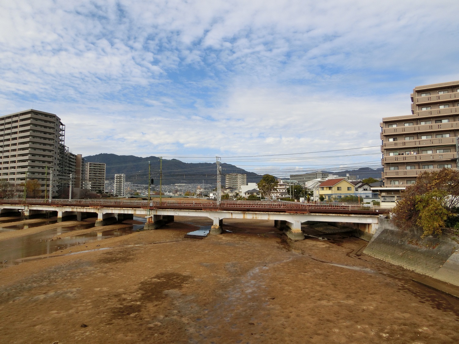 八幡川橋梁はJRと広電を見渡せ、かつてはここで朝通る九州方面行寝台特急を見に来た。あの時に戻りたい。