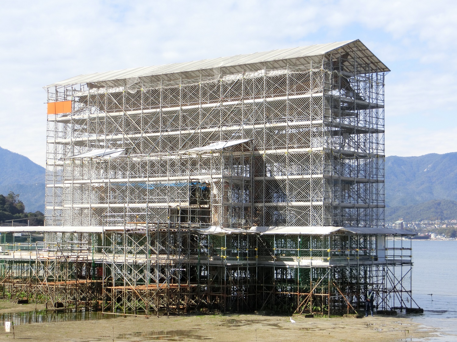 厳島神社の鳥居は大規模修繕工事中だったが、こんな姿を見たのもきっと何かの縁かもしれない。