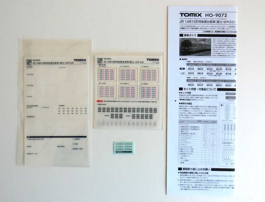 そして、こちらが模型屋さんから届いたトミックスの14系15形「富士・はやぶさ」編成の客車6両(基本セット4両+オハネ15×2両)になります。本来なら、富士に6両、はやぶさに6両、合計12両編成ですが、私の場合そこはあくまで模型のコレクターなので一通りの種類が揃っていれば6両で満足です。