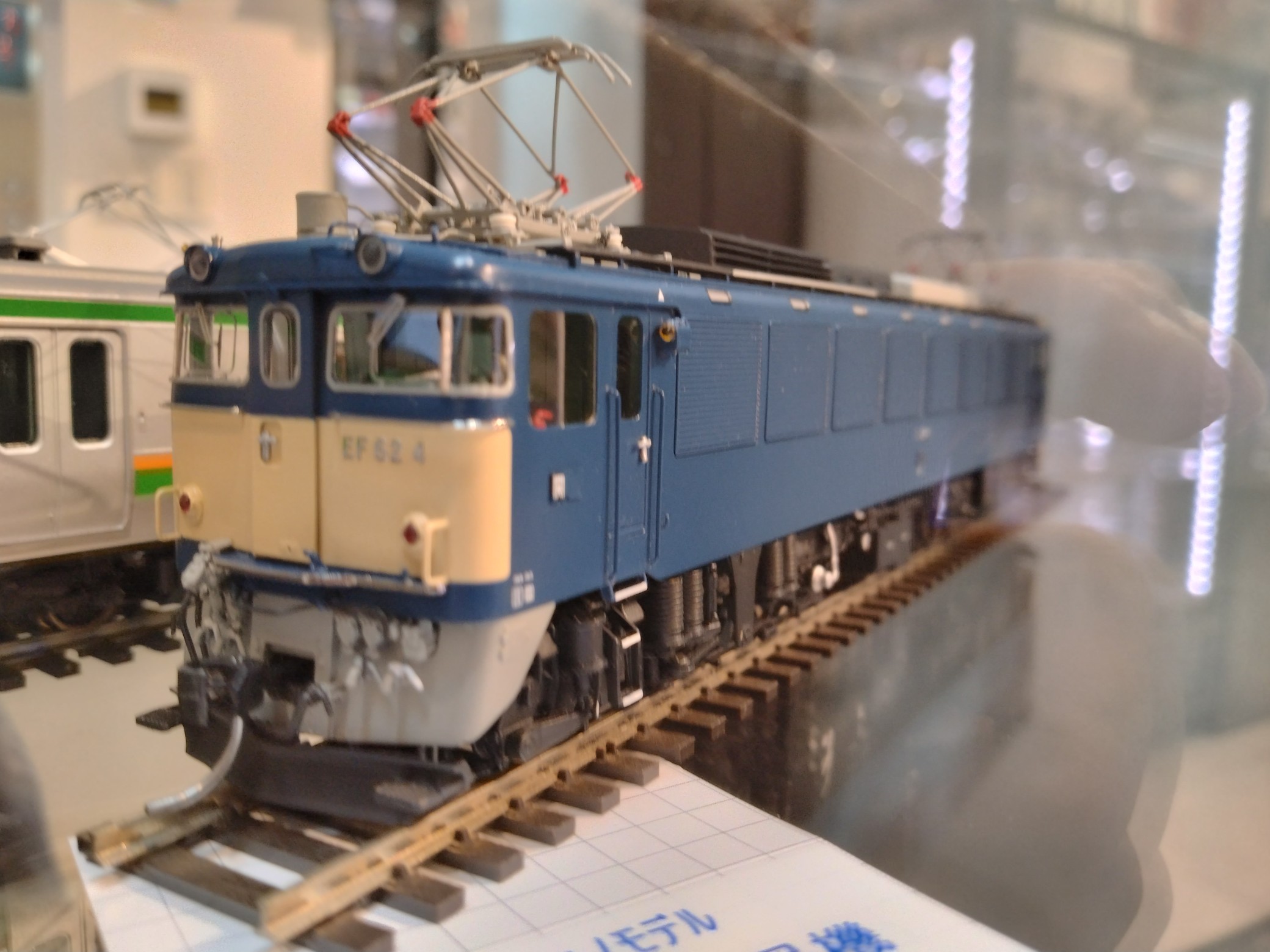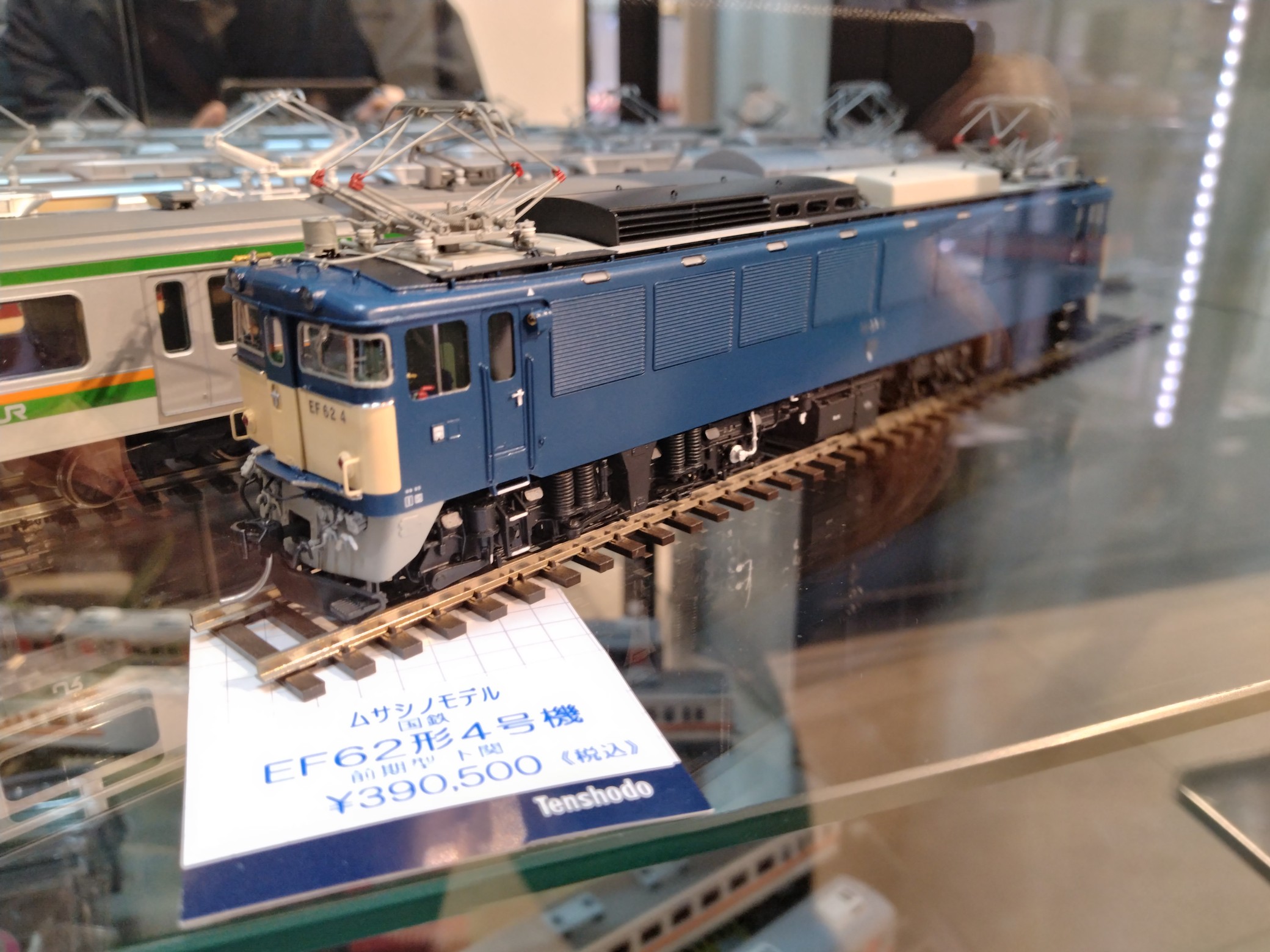 今日、用事があって天賞堂銀座本店に行ったら、新製品の入るショーケースにムサシノモデルのEF62がありました。税込み390,500円だそうです。びっくり