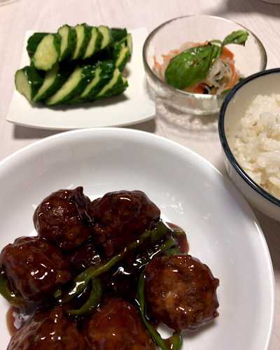 夕飯を食べ損ねがちな日々。そんな日の朝はお腹ペコペコです。朝ごはん・肉団子の甘酢あんかけ・スイチリのサラダ・麦ごはん・お漬物プランターのバジルがわっさわっさしてるのでエスニック風なサラダを。パプリカ、キュウリは軽く塩もみ。味付けはスイートチリソースとマヨネーズ。炒り卵とバジルを加えて和えたら完成です。肉団子の甘酢あんかけも美味しかったなぁ。真っ白ごはんより、雑穀米が好きなので麦入りご飯がとても嬉しいです。参加中のブログランキングサイト↓↓にほんブログ村にほんブログ村人気ブログランキングはこちらからレシピブログはこちらから