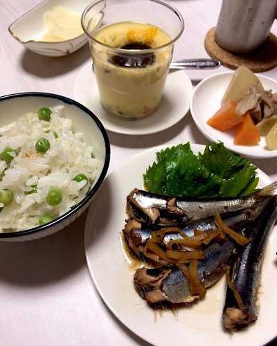旬の物ってなんでこんなに美味しいのか。晩御飯・豆ごはん・鰯の煮つけ・茶碗蒸し・根菜類の箸休め・美味しいお茶毎日ご飯は美味しいんだけど、今日の御飯も最高でした。ドライブの途中で立ち寄った道の駅でえんどう豆と綺麗な鰯をゲット。本日の食卓に上がりました。少しづつ私の御飯も食べてもらいたいなと根菜類の箸休めだけ前日に作ってたんですが、相方さんも母上も美味しいって食べてくれたのでよかったです。豆ごはんの美味しさったら言わずもがな・・・。なんでこんなに美味しいんでしょうね。ガラスの茶碗蒸し用の耐熱容器は3つ同じものを揃えていたものです。本日デビューでしたが問題なく使用できた模様。中が見えるのも楽しいですね。相方さんが淹れてくれたお茶も香りがよくて、おかわりしまくりました。食事後に地図を広げながら今日まわった所の振り返りなんかもして楽しい夜のひとときとなりました。今日も楽しい一日をありがとう。参加中のブログランキングサイト↓↓にほんブログ村にほんブログ村人気ブログランキングはこちらからレシピブログはこちらから
