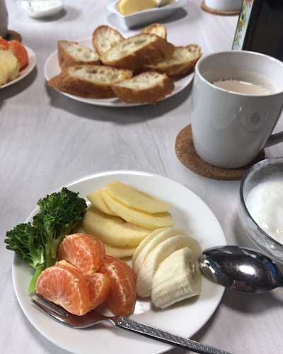 毎回思うけど、朝にフルーツ数種類が食卓に出てくるって幸せだよなぁ~。おかーさんはお料理好きだし、栄養バランスなんかも気にしてくれるので一緒にキッチンに立つのも楽しいです。朝ごはん昨日は急に貧血気味になって夕方は寝込んで何も手伝えておらず・・・。おかーさん、すいません。なので、今朝は私と相方さんで準備しました。といっても切って並べるだけなんですけどね。ビゴさんのパンに淹れたてのコーヒー。とても美味しい(いつも美味しい)朝ごはんでした。夕飯の支度も少し済ませた~。えんどう豆をどうしようか困っていたのでビシソワーズを作りましたよ。お口に合えばいいけどな~。さて。もうすぐ母の日&うちのママンの誕生日なんで、贈り物の準備でもしますかね。こうやって、ブログが書けてる日常に感謝です。参加中のブログランキングサイト↓↓にほんブログ村にほんブログ村人気ブログランキングはこちらからレシピブログはこちらから