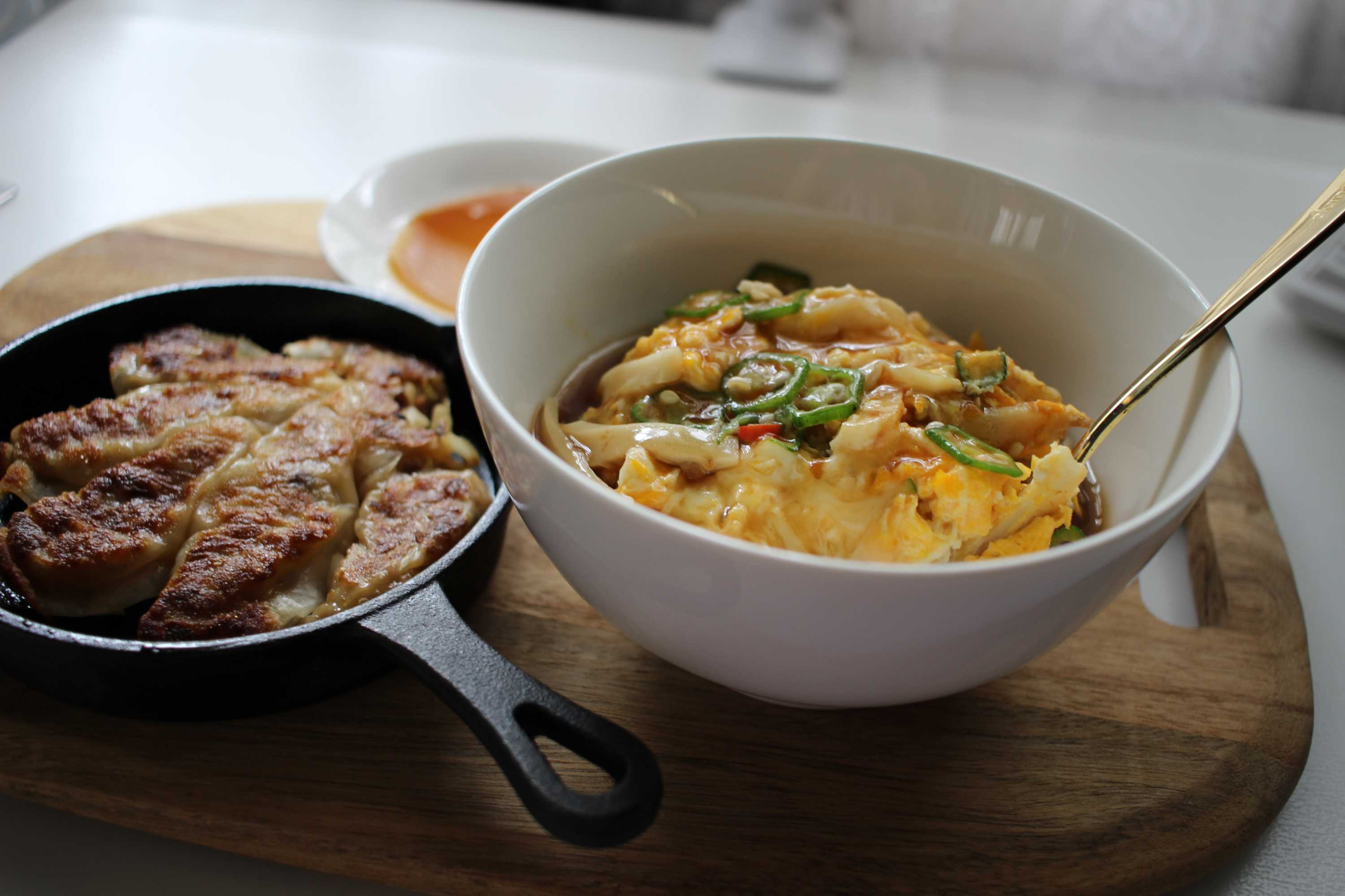 夕飯の残りの餃子がいくつか残ってたので、相方氏に中華定食風のランチにしようかと思い立った日。おうちらんち・豚肉と野菜の餃子・蒲鉾で天津飯餃子は包む過程まで終わらせてたので、ニトリのスキレットをしっかり温めて油を馴染ませて焼くだけです。天津飯は白ごはんにするか味付けにするか迷った結果、相方氏は味付きの方が好きかもと思って、ウエイパーと醤油でシンプルな炒飯にしました。天津飯の卵は半熟の状態でご飯に乗っけて、仕上げの餡作り。餡の具はカットした竹輪、オクラ、しし唐。スープの味付けはウェイパー、鶏ガラスープ、生姜、にんにく、酒、オイスターソース、ごま油で味付けです。片栗粉でとろみを付けてご飯にのっけて完成。カニもカニカマも無かったので竹輪で代用しましたがちゃんと美味しかった〜。野菜室で目が合ったオクラやしし唐も彩りを添えてくれて見た目もよかったです。文句のひとつも言わずに完食してくれた相方氏、ありがとうございました。ニトリのスキレットとも長い付き合いになりましたが、ちゃんと使える大切な調理器具です。参加中のブログランキングサイト↓↓① にほんブログ村② 人気ブログランキングはこちらから③ レシピブログはこちら