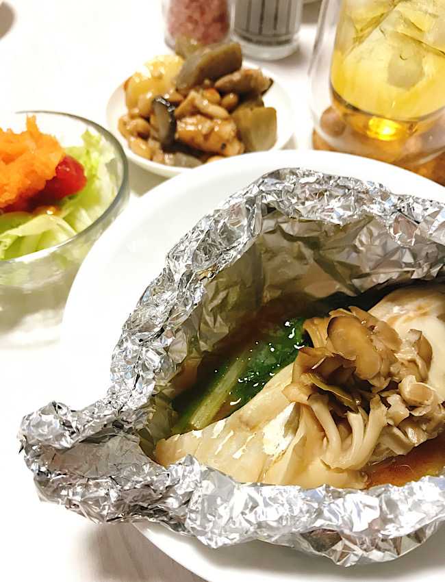 セミ氏の声も心なしか威勢が弱くなったように感じます。お勤め、ご苦労さまです。晩ごはん・白身魚のホイル蒸し・根菜の煮物・人参ドレッシングのサラダ白身魚をフライにするつもりでしたが、分厚さにばらつきがあり、均等に揚げるのが難しい気がしたので予定変更でホイル蒸しにしました。お魚には塩を振って出てきた水分と臭みをしっかりキッチンペーパーで拭き取ります。お魚の下にお野菜を引き、上にはきのこを乗っけて白ワインを振りました。料理酒でもOKです。香り付けにローリエも。10分ほど蒸したら仕上げにバターとポン酢をかけて完成です。すりおろし人参のドレッシングは朝一で作ってたので、出来上がり直前よりもお酢の尖った酸味が抑えられ味も丸くなってました。彩りも鮮やかで高評価頂きました。よかったよかった。ドレッシングのレシピや作る時のポイントは下記リンク内の記事に書いてます。参考になれば幸いです。↓↓すりおろし人参ドレッシングで明太冷製パスタ参加中のブログランキングサイト↓↓① にほんブログ村② 人気ブログランキングはこちらから③ レシピブログはこちら