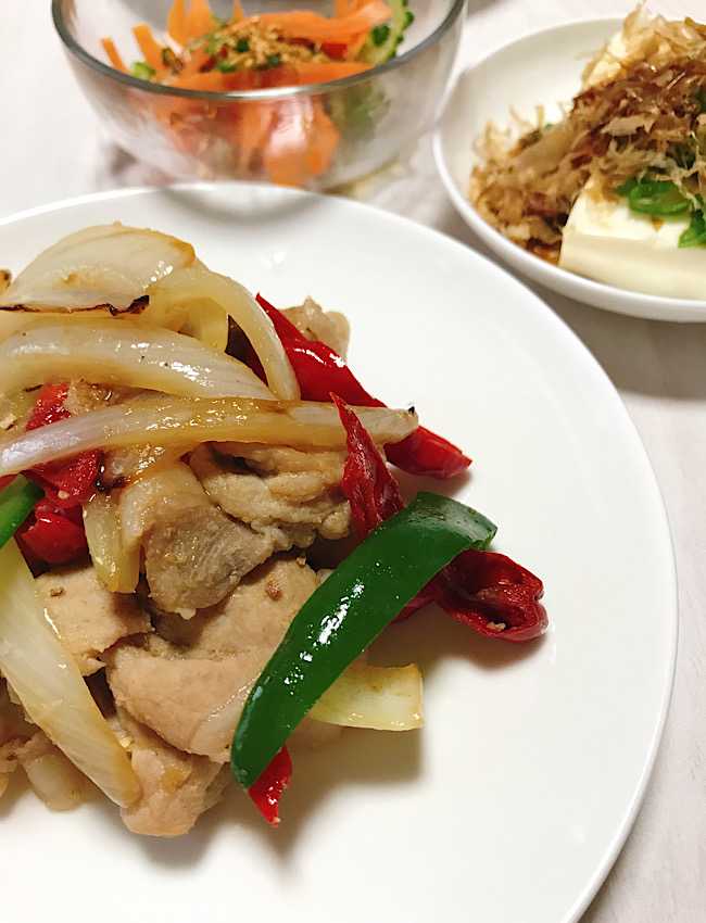 市販品のすき焼きのタレを一度使ってみたけど、やっぱり自分ちの味にならないと持て余してるおかーさん。これを調味料として使って消費していきましょうか〜。今回も簡単にポイントだけ紹介します。晩御飯・すき焼きのタレで生姜焼き・冷奴・ゴーヤと人参のポン酢和え以下、作る時のポイントになります。<生姜焼き>・お肉は面倒だけど、一枚づつ広げて下味を付ける方が炒める時にお肉が丸まって硬くなるのを防げる・お肉は、生姜・料理酒で下味をつける・お肉を焼く前に気持ち程度の片栗粉をお肉にまぶして、肉が硬くたるのを防止・すき焼きのタレは、「濃いめの砂糖醤油」と捉え調味料の配分を考える<ゴーヤと人参のポン酢和え>・ゴーヤも人参もスライサーを使って薄くする・ゴーヤを軽く水にさらして苦味を抑える・ゴーヤと人参をかる〜く塩もみにすると食感が良い・ポン酢で和えるのは食べる直前で(スライスしてるので作りおきにすると、味が染み込んで素材の味がしぬ)すき焼きのタレを使った生姜焼きは甘くなりすぎず無事に仕上がりました。砂糖の甘みを抑えられたポイントは、鰹だしを少し入れた事、しし唐と山椒を使ってピリ辛感と爽やかな風味を出した事かな。おかーさんみたいに料理が好きで何十年もキッチンに立ってる人は、自分の味が出来上がってるので市販の調味料はお口に合わないのかもしれませんね。買って使ってダメだったら、別の使い方をして消費して行きましょう〜。すき焼きのタレは、砂糖と醤油の代わりだと思えば煮物にも便利でいいですね。参加中のブログランキングサイト↓↓① にほんブログ村② 人気ブログランキングはこちらから③ レシピブログはこちら