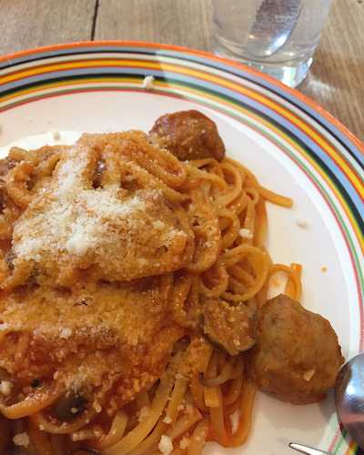 ミートボールの乗ったパスタとレモンサワーを頂きました。生パスタ食べたの久しぶり。3人でのランチで、半分はインタビュー。同席してる二人の会話に相槌を打ちながら奥に見えるニョロニョロさんを見てみたり、寒空の中、仲良く歩くカップルや家族の姿にほっこりさせてもらったり。