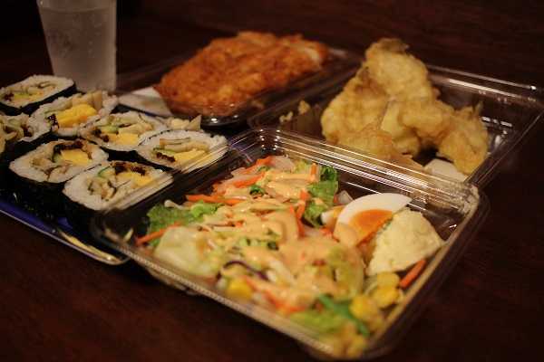 夕飯は魚の棚市場でゲットしたキスの天ぷらや、近くのスーパーで買ってきたお惣菜たち。穴子巻きを食べて地元の食文化に触れる。