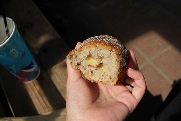 スモークチーズ入りのパン。これ、絶対にワインに合うやつや。