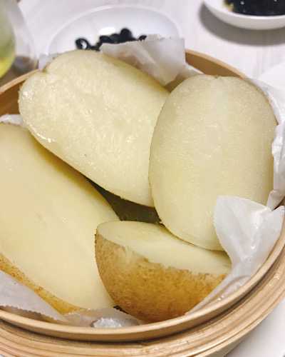 じゃがいもはシンプルにせいろで蒸してます。シンプル・イズ・ベスト!。岩塩で頂きましたが、これがまた美味しいのなんの。お芋さんなのに喉につまらないというか、ホクホクでもありジューシー。「じゃがいもは飲み物です」と、人生で初めて言いました(笑)