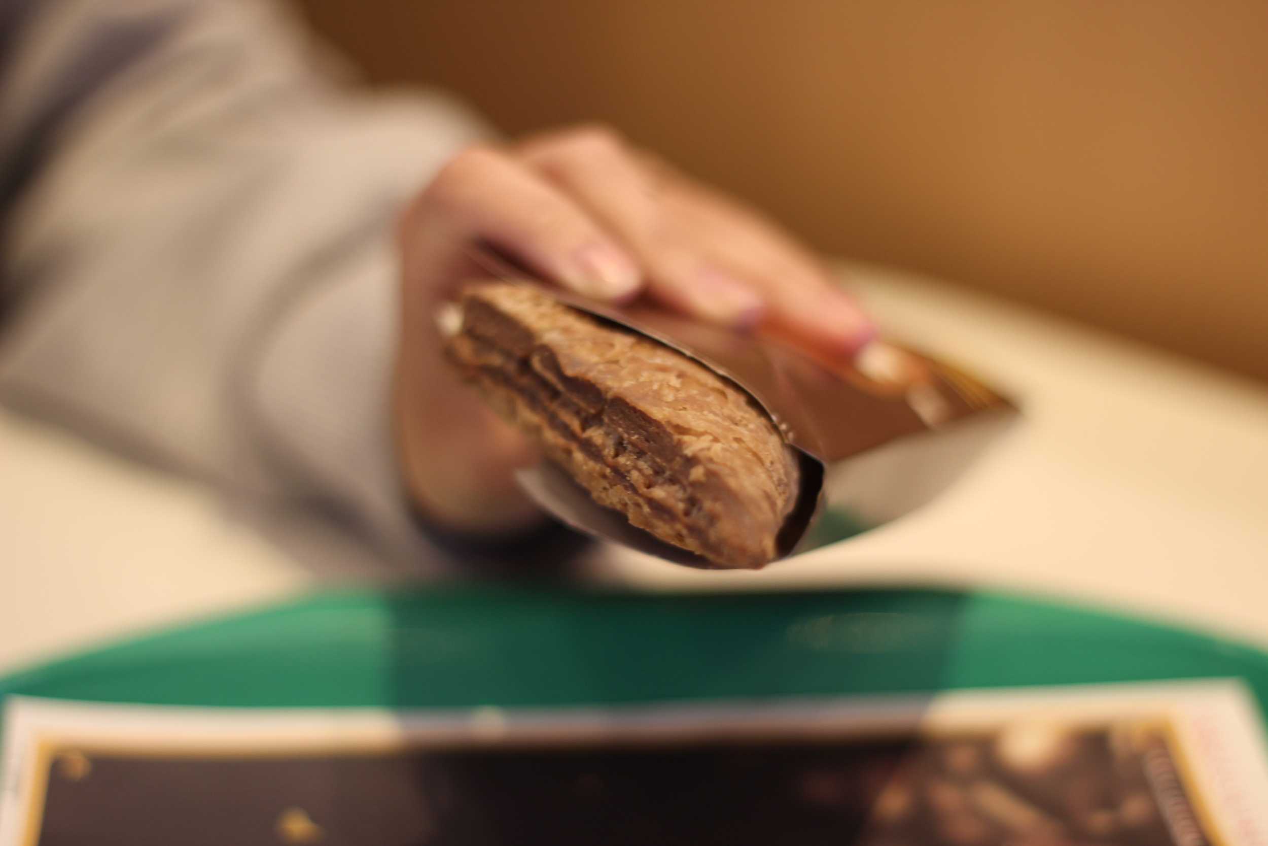 白と黒の三角チョコパイ。チョコパイの登場で冬が来た感じがします。