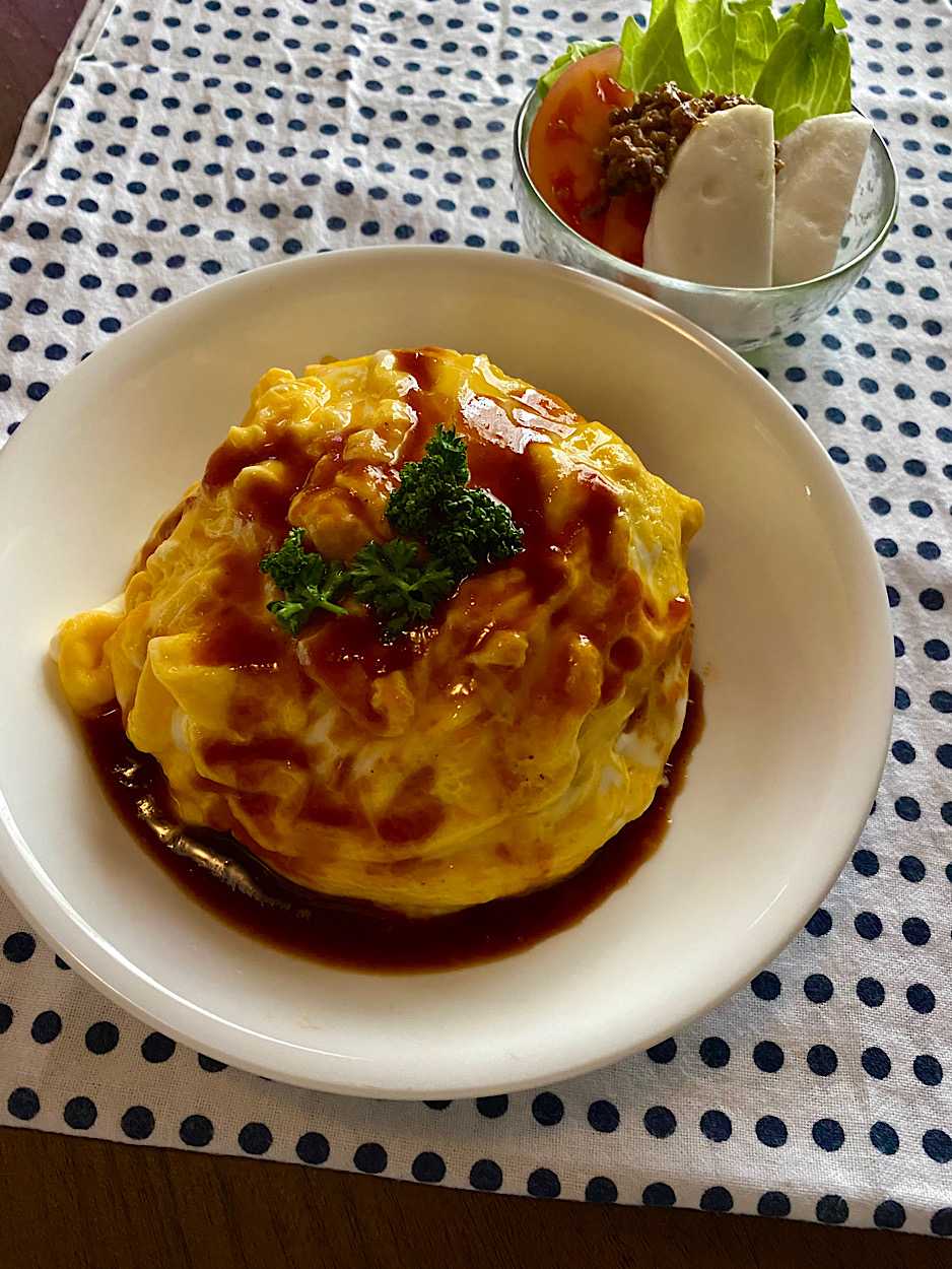 大葉醤油おにぎりプレート、デミソースのオムライス