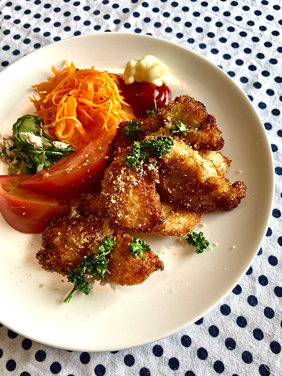 カツは卵と薄力粉の代わりをマヨで代用。もうずっとこのやり方しかしてない。全然問題ない。パン粉に粉チーズを仕込むつもりがすっかり忘れてた。