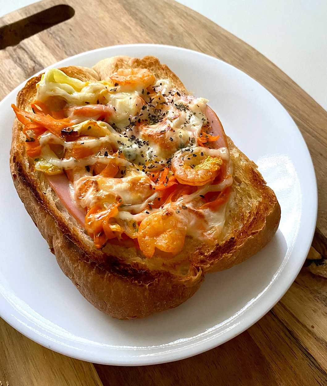 むき海老、キャベツ、キャロットラペ、ハム、チーズ。