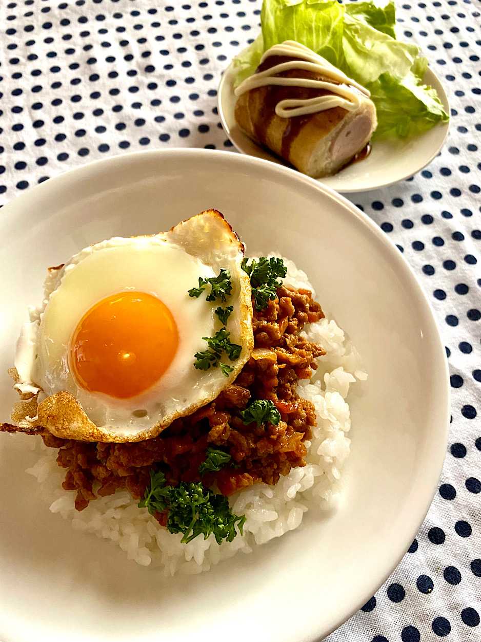 豚ひき肉で作ったドライカレーはエスビーのカレー粉がメインの味付け。すごく食べごたえある。卵焼き器で生地と魚肉ソーセージを焼いただけのはし巻き風も作るのも楽しかった。