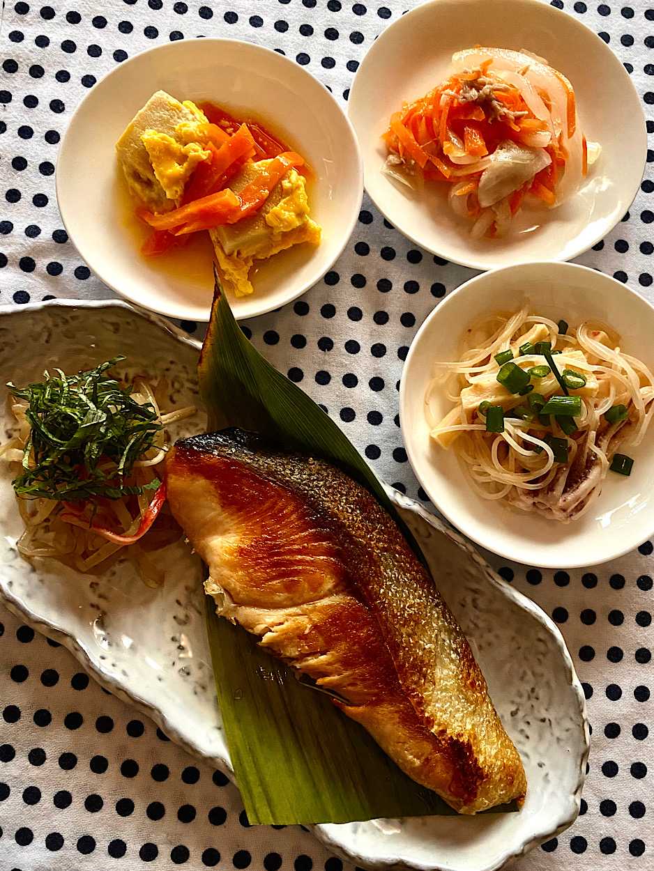 作り置きを含めて食材一掃メニュー。お野菜も多く摂れてよかった〜。