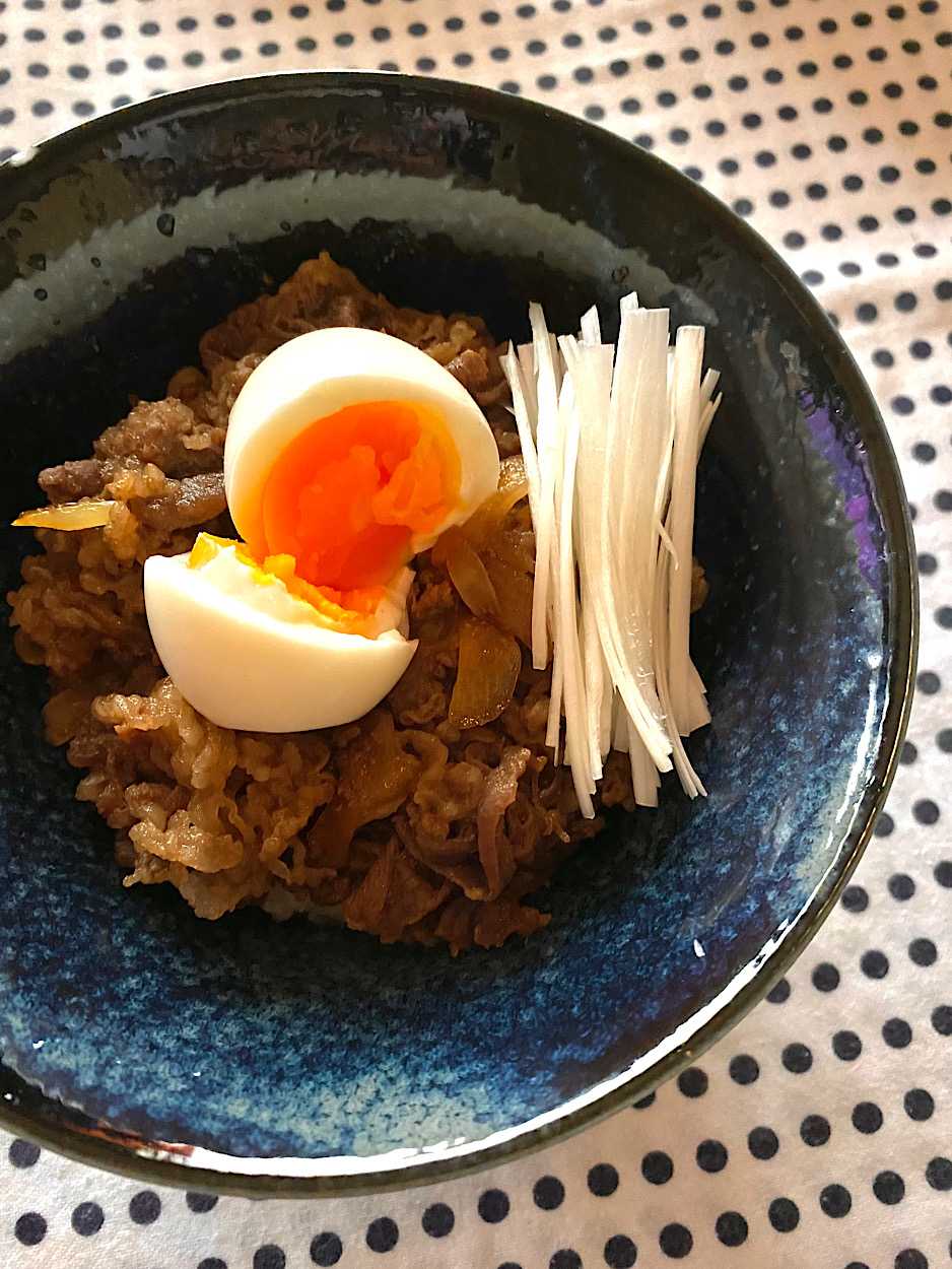 有名牛丼屋さんに負けないくらい美味しくできた牛丼。おかずとして出す場合と丼の頭にのっけるときでは味の濃さを変えるようにしてます。丼にする時は味が濃いめ。我ながらめちゃくちゃ美味しくて一口毎に感動した(笑)