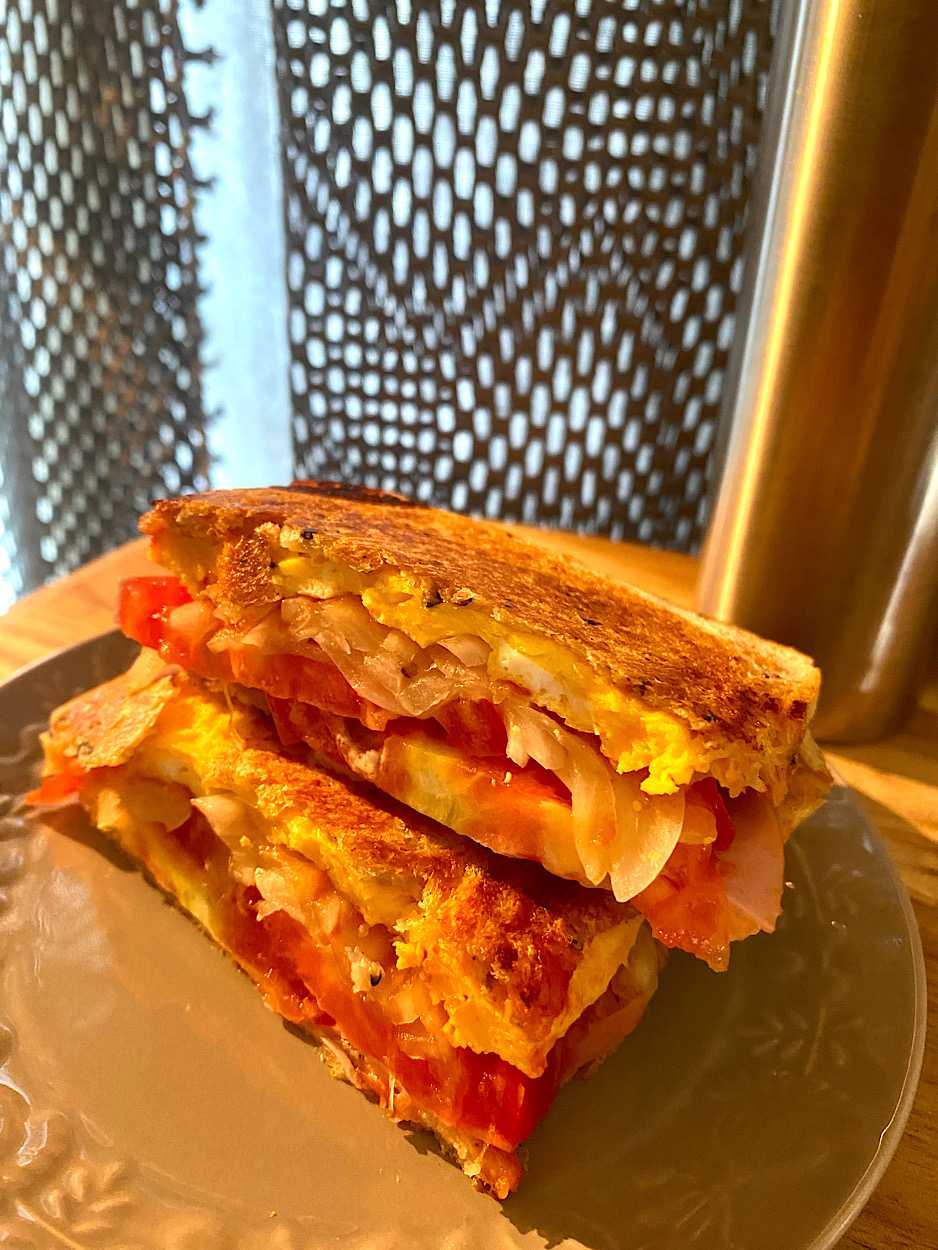 ・トマトハム玉ねぎ卵のホットサンド