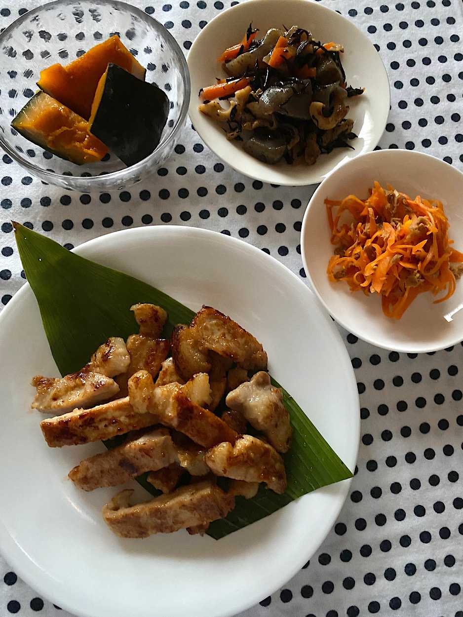 味噌マヨに2日程漬けられた豚さんは本当に柔らかく、味もしっかり染みててご飯が進みます。周りの副菜は2.3日食べられる分を作り置き。そのまま食べてもアレンジしても良いので常備菜は欠かせないですね。作りながら、余ったら何に変身させようかな〜なんて事を考えてます。