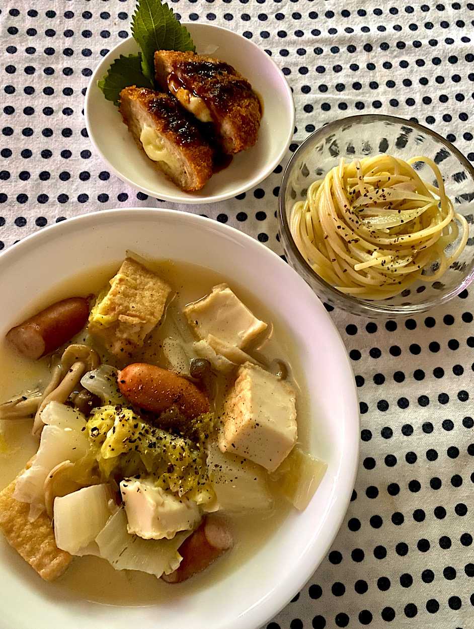 白菜も安くなってきましたね。今年も柔らかくて甘みのあるオレンジ白菜を食べたいんだけど出会うかな?食べごたえのあるようにわざとウインナーも厚揚げもごろっと入れました。