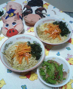 先日買い物に出かけたらネギが高く鍋に入れられなく、実家に救援物資を頼み、昨日到着しました。そこで、昨夜はラ-メンを作りしました。 右はしょうゆラ-メン 左はみそラ-メン です。具材はあんまりないので冷蔵庫にあった、ニンジンを細切りにし、フライパンで炒め、塩・コショウで味つけしただけです。甘くて、美味しく、これはオススメです♪♪ラ-メンには焼き餃子が定番ですが、ウチでは簡単に出来る水餃子です。普通の焼き餃子にする餃子が一番美味しいです。みなさ~ん(^_^)/ 是非、食べて見て下さい。コメントお待ちしてま~す(^○^)/~~~ ◎ネット特別価格でお安くなっております。 ★新登場★ 中華のプロも納得! 今ならお試し特価でお買い得! ↑ウチと同じ物がありました。 ◎ブタの鍋掴みは残りあとわずかです。お・早・め・に・・・!!見ていても楽しいですよ♪♪♪