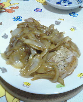 昨日の晩ご飯は実家の母が私に作ってくれて美味しかった料理を旦那さんにも食べさせてあげたく作りました。が、名前がなく夫に「名前がないからブログになんて載せよう~」と相談したら、「ブログのみんなに名前つけてもらえば~」って言われちゃいました。 ☆タマネギを細かく切りフライパンで塩・コショウをし、しんなりするまで炒め、 とんかつソ-スで味を付け、ひとまずお皿にあけておきます。☆ブタロ-スステ-キ・とんかつ用のお肉を使用しました。(少し厚めです。) まな板にお肉を置きフォ-クとかでお肉をブスブスさし、粗挽きコショウ・塩を します。☆フライパンに少し多めの油でお肉を焼きます。(フタをして焼くと良いです。)☆焼きあがったらお皿にうつし、最初に炒めたタマネギを同じフライパンで 再度(軽く)炒め直し、出来たらお肉の上に乗せれば完璧の出来上がりです。みなさ~ん、名前はなんにしたら良いでそうかねぇ~。コメント待ってま~す。(⌒_⌒)/ バターのような脂身が豚肉の命、 赤みと脂身のバランス絶品! ハーブ飼育の銘柄豚肉・浜名湖育ちです。札幌市丘珠地区で鶴見さんが手塩にかけて育てた「玉ねぎ」です!