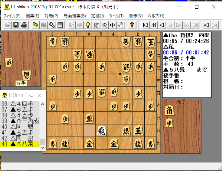 いよいよ戦法別攻略も四間飛車指定となる。将棋2は一応四間飛車には指してくれるのだが、当時の将棋ソフトらしく、角交換振り飛車も藤井システムもなく単調に美濃にしてくるだけ。とはいえ私も四間飛車に対しては右四間しかないので、いい勝負ではないだろうか。果たしてどうなるか。