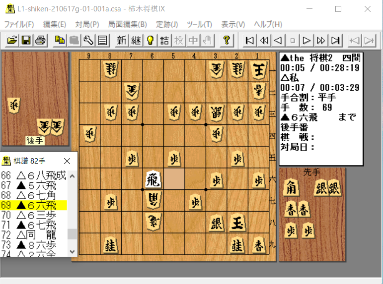 ▲同 角    △6五香    ▲3三角成  △同 銀    ▲6六歩    △同 香