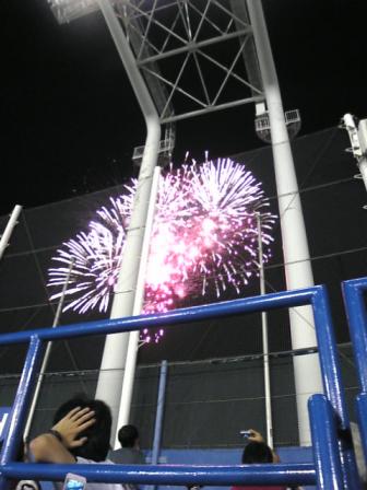 昨日は花火を見に神宮へ…。ってメインは試合観戦なんだけど。平日の夜だし、行こうかどうしようか迷って前の晩に急遽参戦決定。で、先発ピッチャーがマエケン×チリガミと分かった時点で目的が花火へと変わった。試合の流れはどっちに行くか分からないくらいで最後まで気を抜けなかったな。と、言うより広島の方が押していたと思う。だって、広島の攻撃の方がず~~~っと長いんだもん。でもね~なんとか接戦をモノにしちゃった♪今年のヤクルトは、ホントよくまとまってるよ。ミスした時は厳しいけど、結果を出した時はきちんと褒めてくれる小川監督。みんなやりやすいんだろうな。って、ことで。実は私、神宮生観戦の勝率10割♪