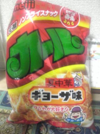カールのギョーザ味。これは、おいしいー!!なんか、本当に餃子の味がした。先日のチーズカレーあじが残念だっただけに、これは良い感じ