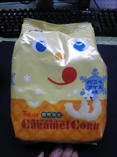 キャラメルコーンのバニラアイス味。わりと軽くて食べやすいよ。メロン味のもあったから、また買ってみようかな。