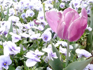 先月、実家に帰ったとき近くの公園で撮った写真です。チューリップはほぼ終わり、パンジー(?)が満開でした。菜の花も満開でしたー。