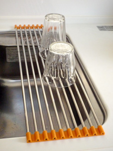 以前紹介したスノコロロ。やっぱり欲しくなって買っちゃいました(笑)10本サイズのを買いましたよ~。うちは2人暮らしですが、夕食の時とかは洗った食器を置くのはちょっと狭いかな(^^;)20本サイズを買って必要な分だけ広げる方が使い勝手いいかもしれませんね~。10本入りのもう一つ買おうかしら、、、オレンジのシリコンのところとステンレスの棒は取り外しができてバラバラになるので洗う時もラクチンです(^^)折りたたみ水切りマット スノコロロ価格:3,010円(税込、送料別)