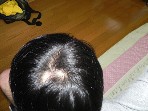 こんばんは、eitaroです。今日は、水槽は、何も触りませんでした。変化なしです。 タイトルが気になると思いますが、頭にじゅうえんだまハゲが出来ました。右側がつむじ。左側が疑惑のじゅうえんだまです。しばらく前から、できものが出来て、気になってはいましたが、嫁さんの母が、eitaroがはげているって言われました。私は、実際に見たことがないので、子供に写真を撮ってもらいました。かなりショックですね。後ろからの視線が気になります。病院に行こうか、非常に悩む所です。 スケルトンビー 最前面に出てきてくれました。お尻のところに貝がかぶっていますが、一番卵の様子がわかるのでUP。 それと竹炭に活着させた、プレモス。エビなし画像でした。 休みも今日までの方が多いと思いますが、明日からお仕事頑張りましょう! eitaro